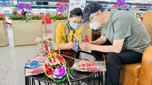 今年中秋喜逢國慶,為增添節(jié)日氛圍,弘揚中華傳統(tǒng)文化,首都機場在2號航站樓、3號航站樓愛心服務(wù)專區(qū)設(shè)置了中秋節(jié)主題活動,旅客可現(xiàn)場參與花燈、掛飾、琉璃花瓶等工藝品的制作,把來自首都機場的節(jié)日祝福帶回家。