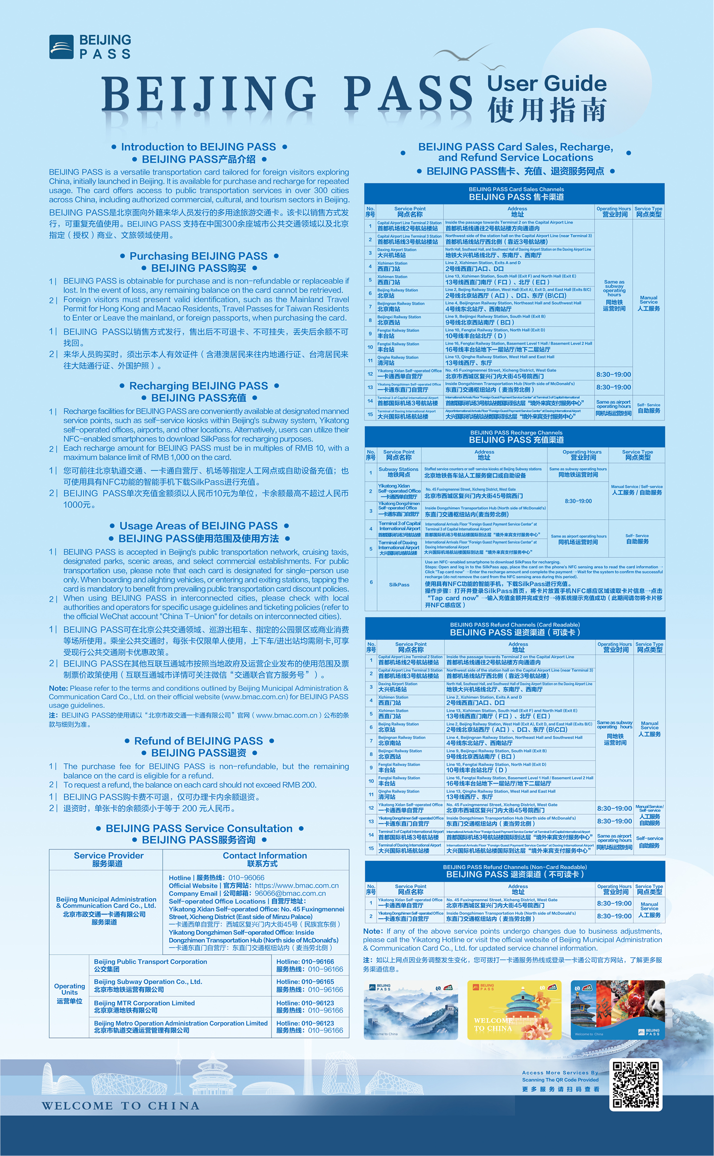BELJING PASS以銷售方式發(fā)行,售出后不可退卡,不可掛失,丟失后金額不可找回。來(lái)華人員購(gòu)買時(shí),須出示本人有效證件。